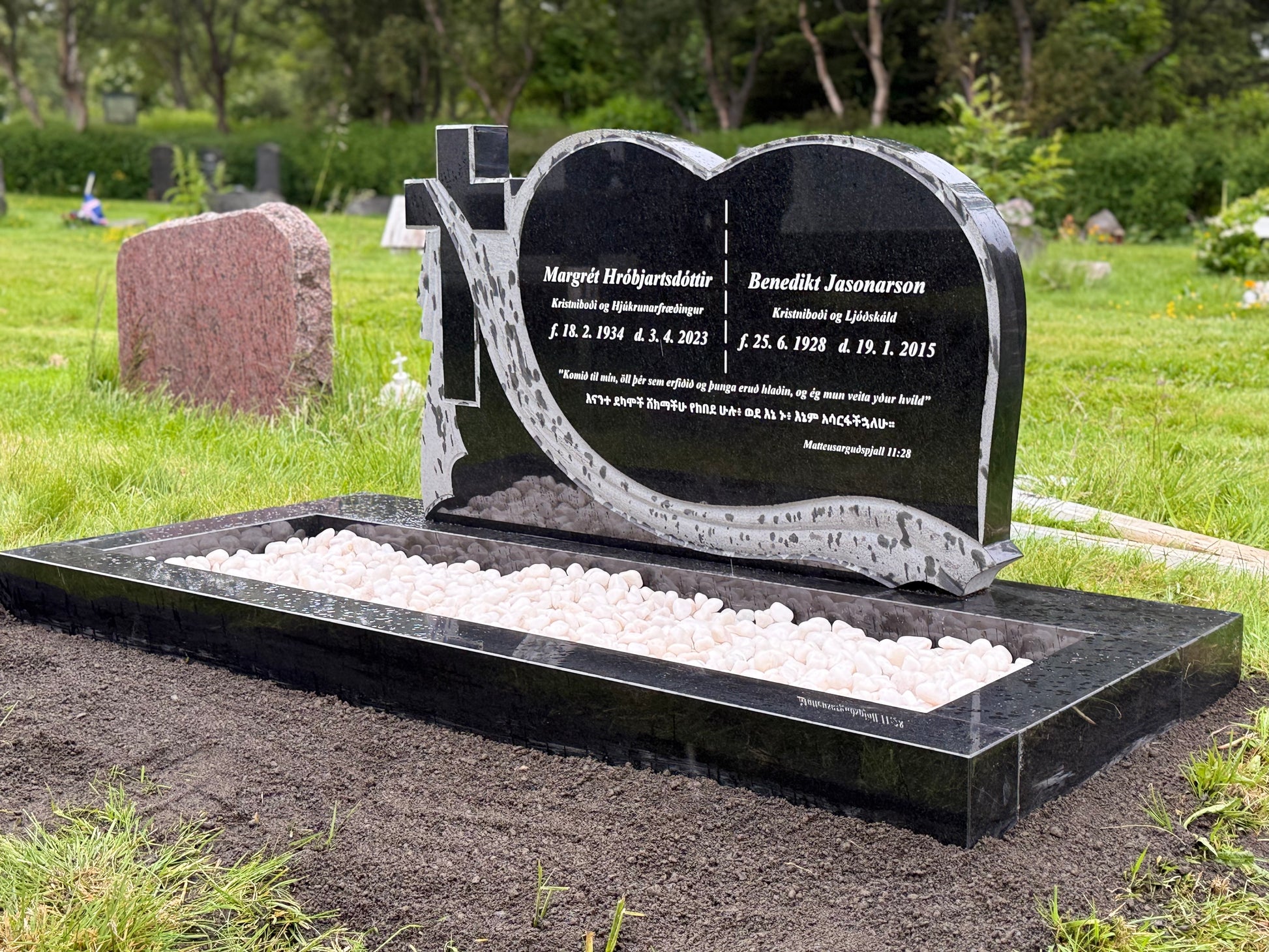 Uppsetning á höfuðborgarsvæðinu innifalin. Legsteinn sem hentar á hefðbundin, tvöföld/þreföld leiði.